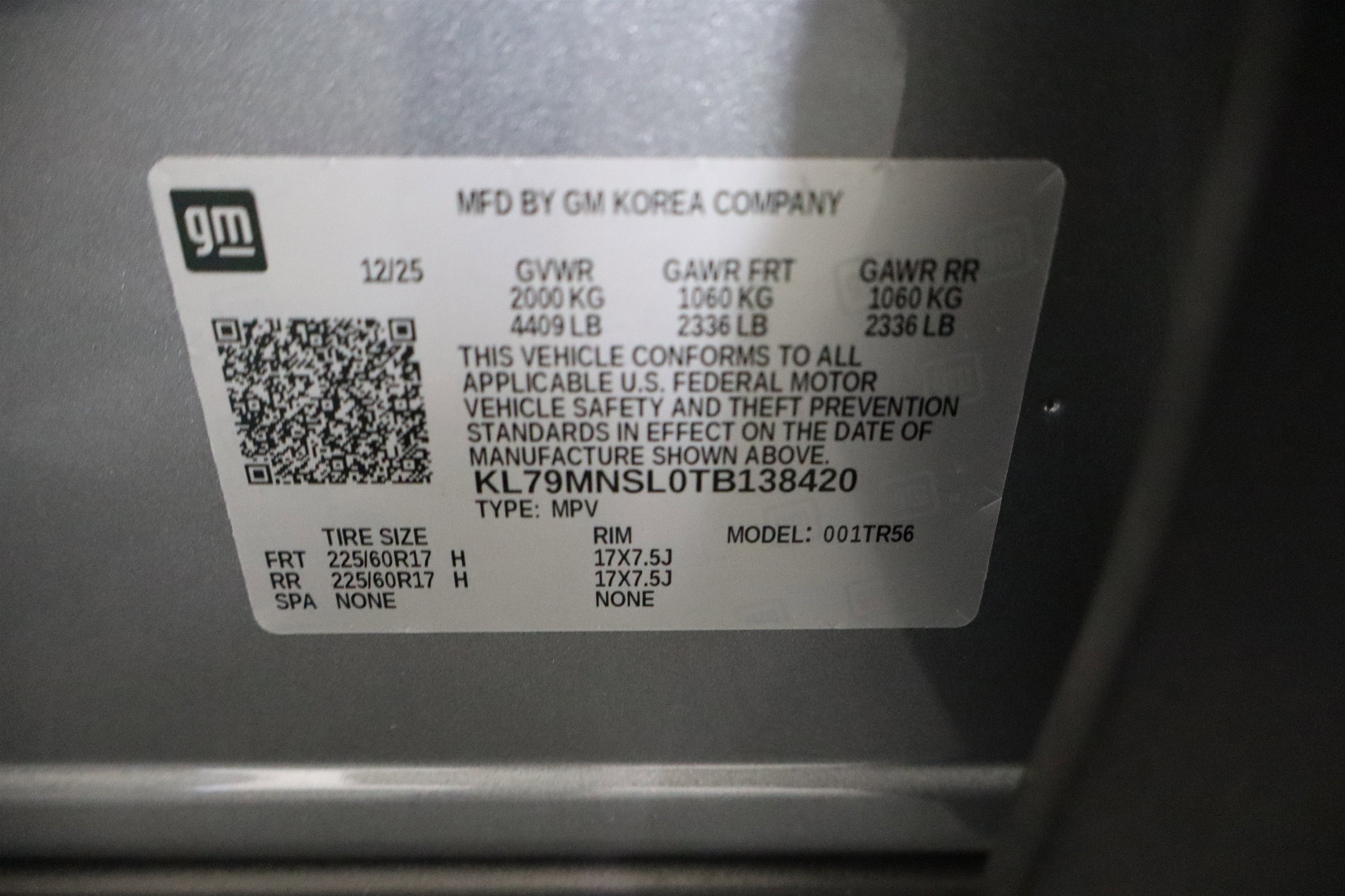- Tires, 225/60R17 all-season, blackwall