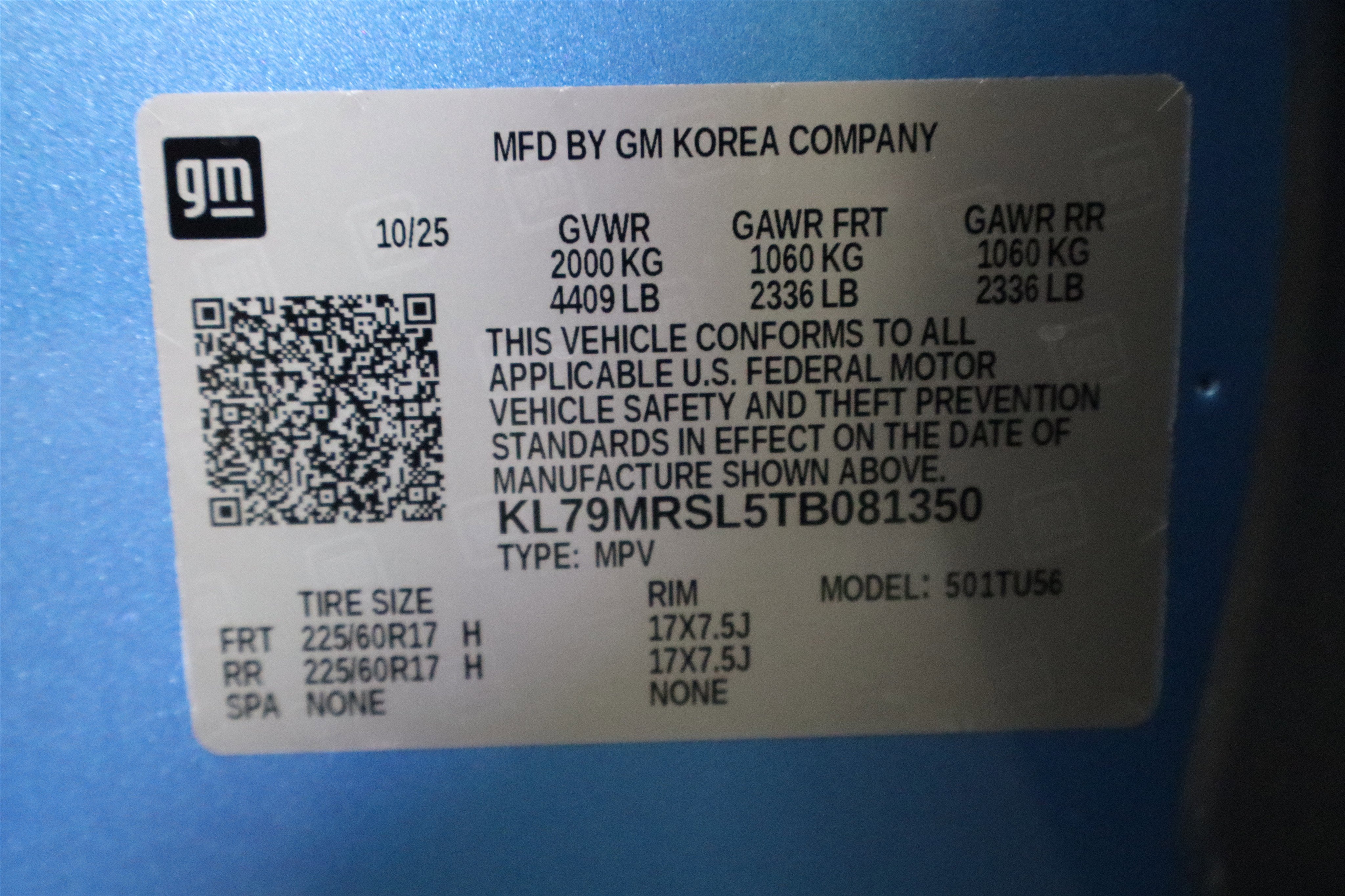 - Tires, 225/60R17 all-season, blackwall (STD)