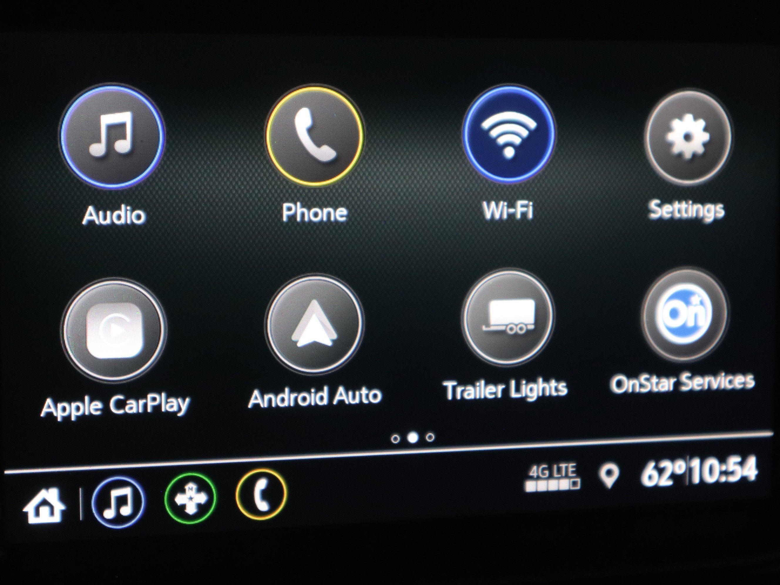 - Audio system, Chevrolet Infotainment 3 system 7" diagonal color touchscreen, AM/FM stereo. Additional features for compatible phones include: Bluetooth® audio streaming for 2 active devices, voice command pass-through to phone, wired Apple CarPlay and Android Auto capable.