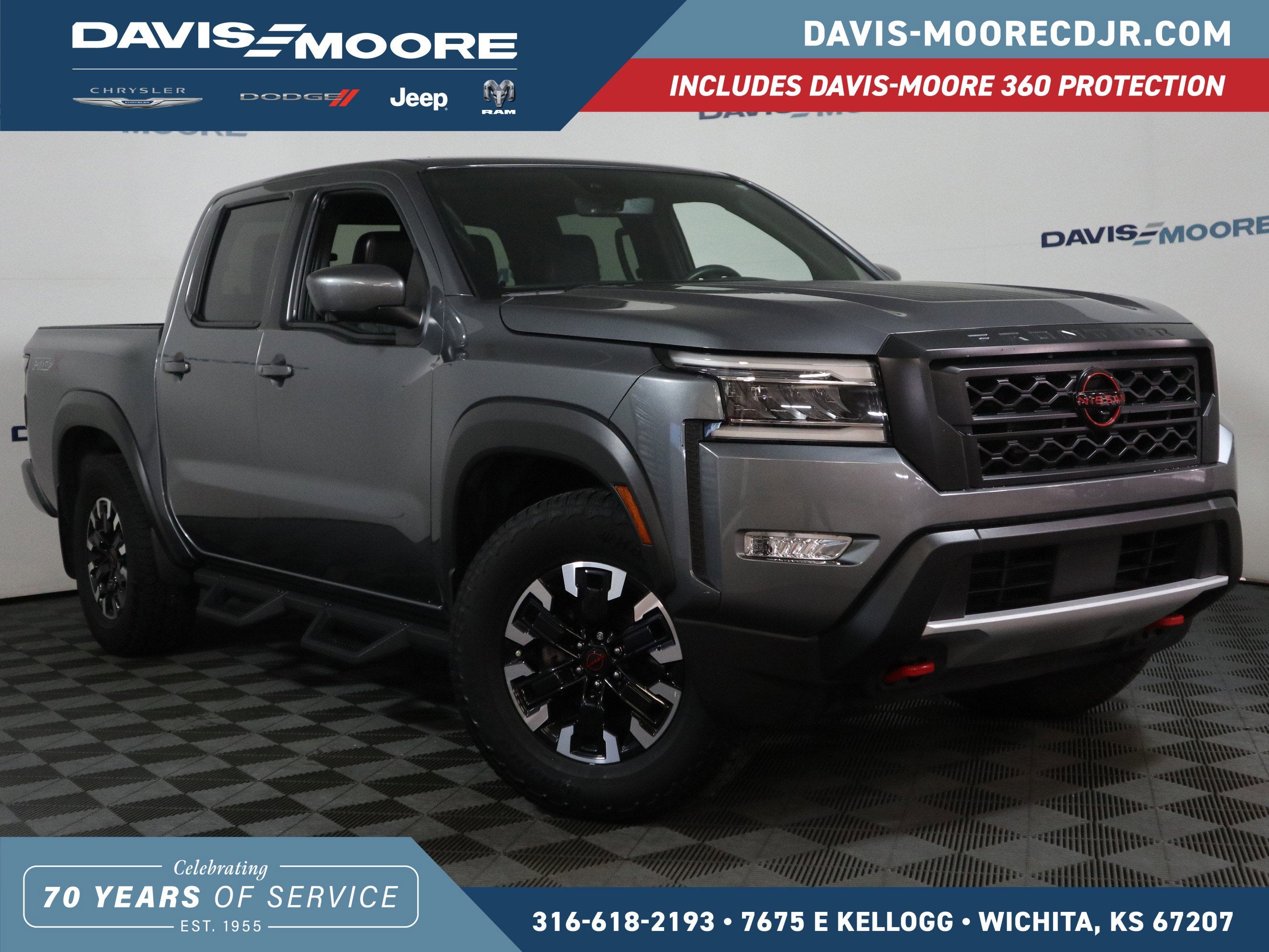 Davis Moore CDJR is proud to present this 2023 Nissan Frontier PRO-X. All of our Pre-Owned vehicles come with the exclusive Davis-Moore 360 Coverage. This coverage includes: two free oil changes, no charge check engine light diagnostic, 171-point comprehensive inspection quality guarantee with up to a 90 day or 4000 mile limited warranty and a 3 Day vehicle return policy. - See dealer or website for more detail. https://www.davis-moore.com/davis-moore-360-guarantee.html.