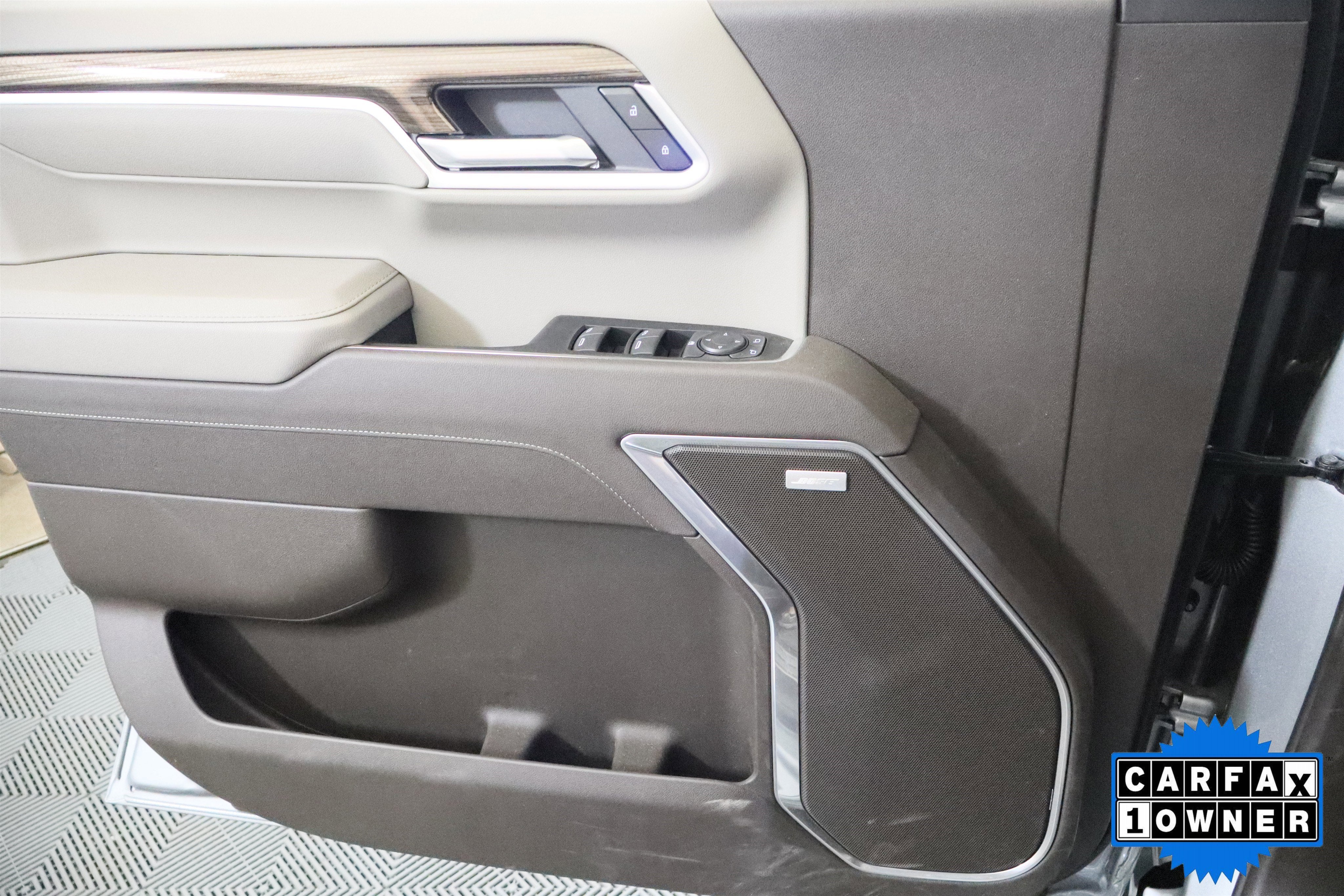 - Door panel insert: Simulated wood and metal-look door panel insert